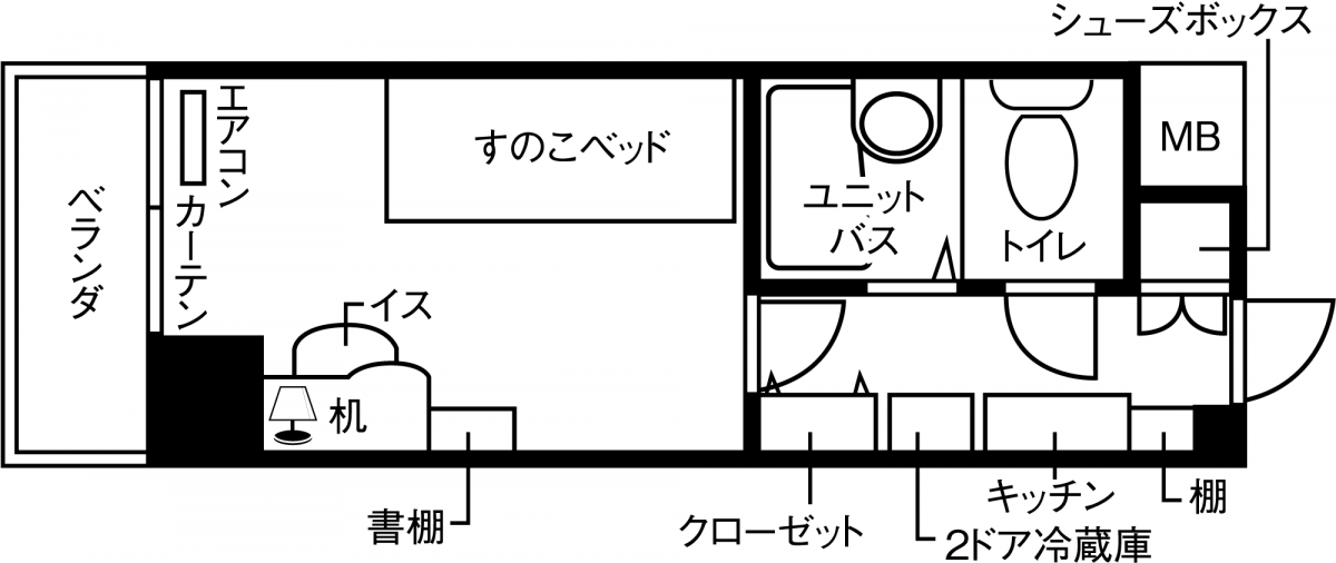 家具家電付きの個室で、プライバシーと自立した暮らしを両立。