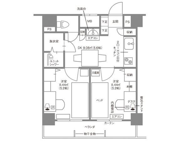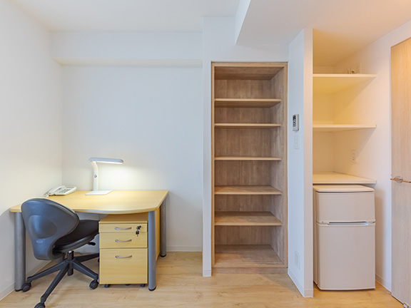 すぐに快適な生活がスタートでき、施錠もでき、自分だけのホームベースとして安心して過ごせます。デスク、チェア、ベッド、冷蔵庫、ユニットバス、トイレ別、インターネット、照明器具、カーテンなど、基本的なものは全て含まれています。だから引越し荷物が非常に少なく、楽なうえ経済的です。水回りが無いので掃除も最小限で済みます。