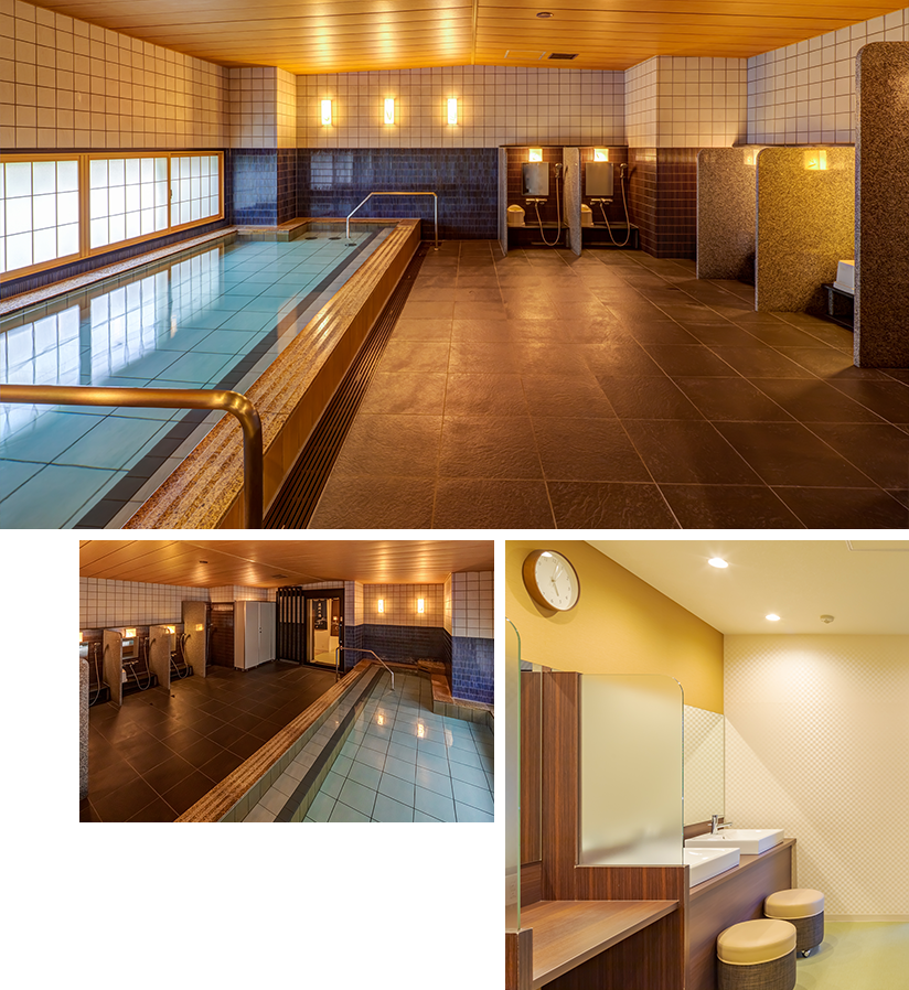 「運河の湯」と名付けられた大浴場を男女週替わりでご利用いただけます。のんびりと大きな湯船につかり、1日の疲れをゆっくりと癒してください。